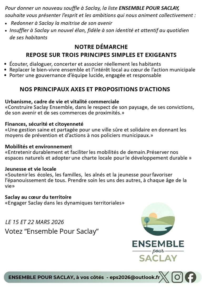 Vendredi 06 mars de 20h30 à 22h Saclay, au cœur des territoires * Salle Lino Ventura